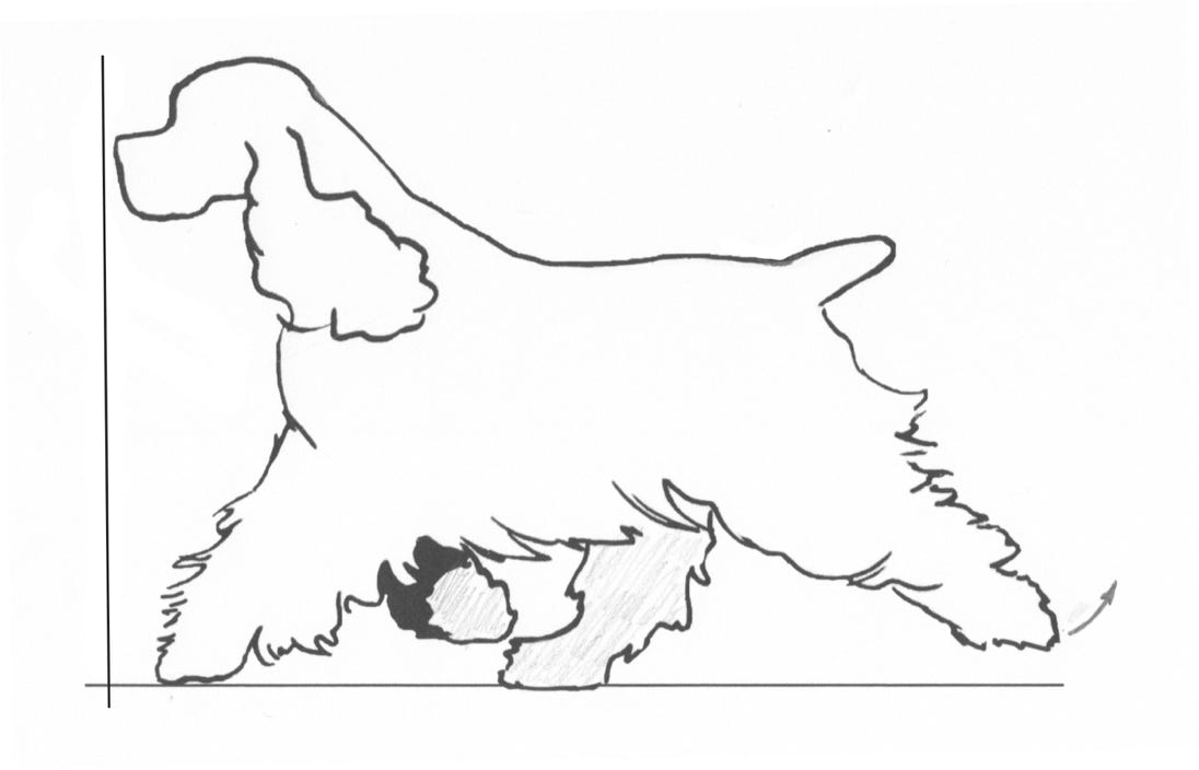 Length, depth, and spring of rib allow room for needed heart and lung capacity. They are vital in Sporting breeds that are required to work for long periods of time.  A Cocker who is “short backed” is one with a long rib with a short loin.