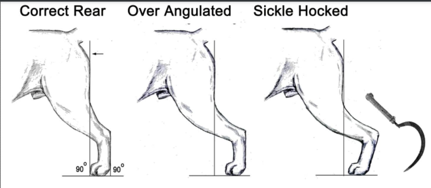 ‍In the end, every dog in her lineup had extreme rear angulation. Several were even sickle-hocked! From where I was sitting, I could hear various people at ringside commenting on how nicely structured the rears were. It didn’t seem to matter how much the rears overreached or how the hocks didn’t open up. The only thing that mattered was the illusion of power created by the bend at the stifle and hock joints.