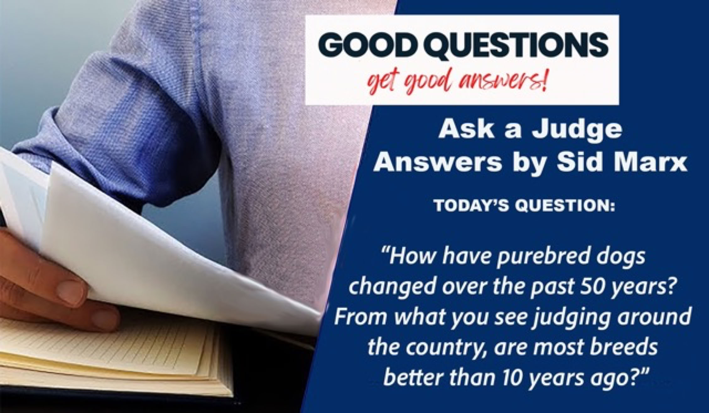 There is no single answer to this question. I have discussed it many times, and my answer remains the same: it depends. It depends on which breed we are talking about and it depends on what you mean by better. It is undeniable that with the advances in nutrition and veterinary medicine, many breeds have better longevity and health. In the show ring, we certainly see more coat. Whether that is a better thing or not is debatable. Excessive coat is being used to cover a lot of structural faults, and I do not think that is to the betterment of the breed. Grooming has become much better, and in many breeds, we are often looking at a grooming competition. Again, that is not breed improvement.