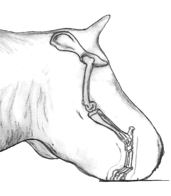 steps.  From the side his front legs will not extend to the end of its muzzle.  The rear will have a swinging, motion displaying a poor top-line.  The rear foot,