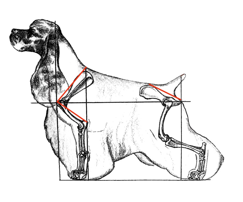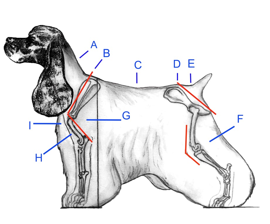 ‍The type of movement we are talking about is more than “flash and dash,” or how fast your dog moves around the show ring.  Outstanding movement is based on proper structure. How your dog is built determines his stride.  Proper structure allows a dog to go the distance with less effort and gives him improved shock absorbency in athletic activities such as Agility and hunting.  Good structure enables him to remain sound throughout his lifetime.  While the Breed Standard gives lists of traits and attributes of the breed, we will highlight some of these with visual  examples.