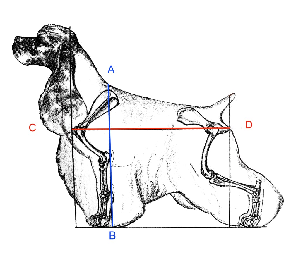 Correct proportion is described as: the dog’s length is slightly longer than its height which gives the Cocker balance and symmetry.