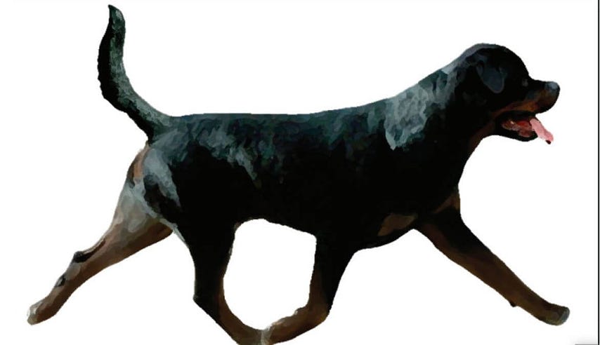 ‍I will assume that the reader already knows the difference between a gallop, pace, and trot, and that the Rottweiler’s primary mode of travel is as a trotter. The trot is a very efficient endurance gait used by coyotes, wolves, and other wild canines to travel vast distances without exerting too much energy. It is a ground-covering gait that animals use to keep moving for hours and is the typical gait of herding breeds. So, we will assess the efficiency of our Rottweiler’s rear assembly at the trot, their most productive gait.