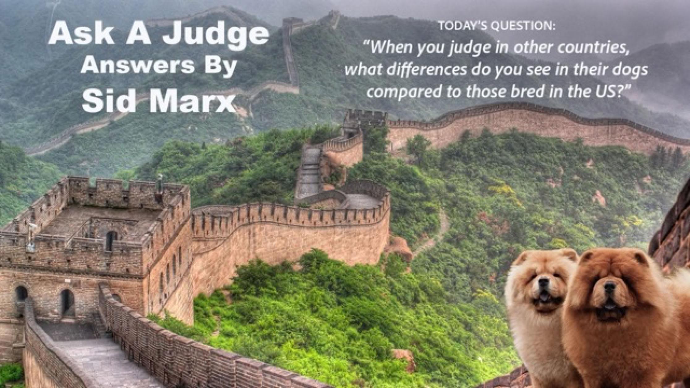 Thank you judge Sid Marx for your fascinating answer to this week's exhibitor question. It gives us a great glimpse into dog shows around the world.